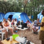 Predivan dan! Danas su nam u goste došli humanitarci: dečko iz Jordana Issam i volonterka Ana iz osječkog Crvenog križa koji su bili u Pakistanu te naši misionari iz Labina, Sanja i Aleksandar. Issam, volonter Crvenog polumjeseca iz Jordana govorio je engleskim jezikom, kampisti su vrlo uspješno postavljali pitanja na engleskom jeziku. Susret s ovim volonterima najviše nas se dojmio. Kampistima se sigurno svidjelo „šminkanje“ odnosno imitacija ozljeda u kojoj su vrlo rado sudjelovali.